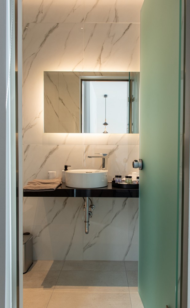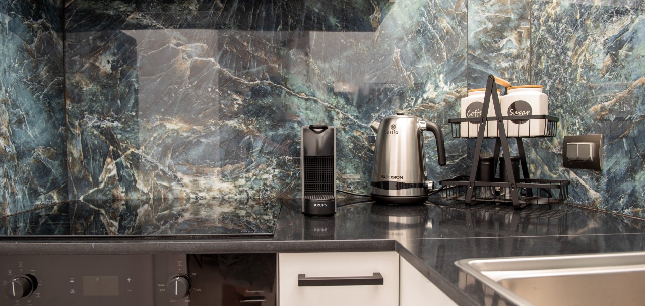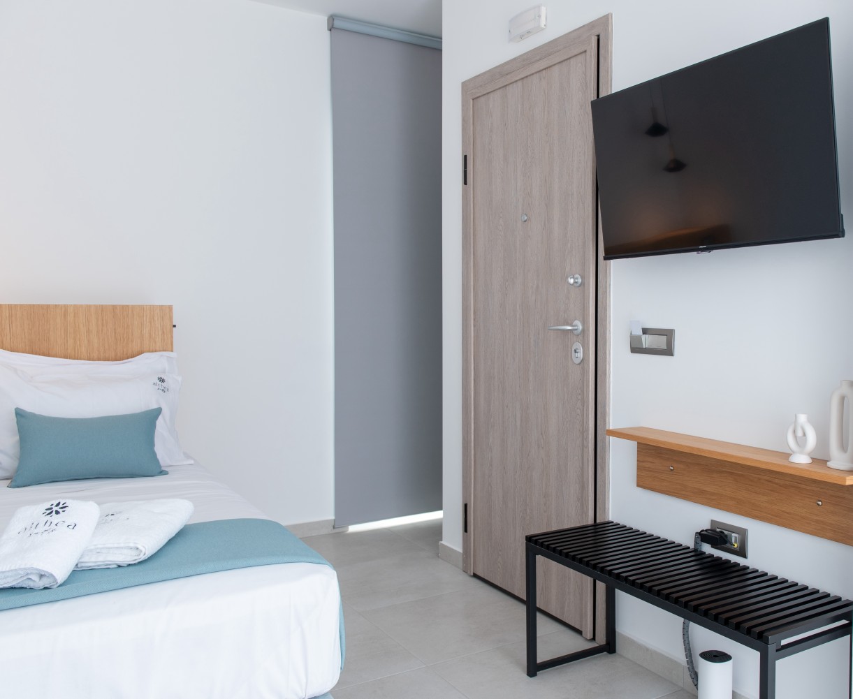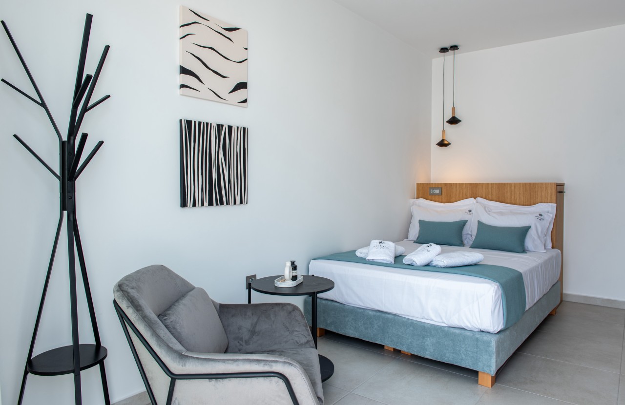 Although smaller in size, this 3rd-floor studio apartment boasts the advantage of a larger balcony, providing an excellent space for relaxation. The room receives plenty of natural light and includes a superior quality double bed. Guests can enjoy high-speed complimentary Wi-Fi and a wide selection of local and satellite channels on the 40-inch smart TV. The open-plan kitchen is fully operational, with all necessary appliances and utensils for preparing meals. The modern bathroom features spacious shower facilities and complementary towels for guests' convenience.