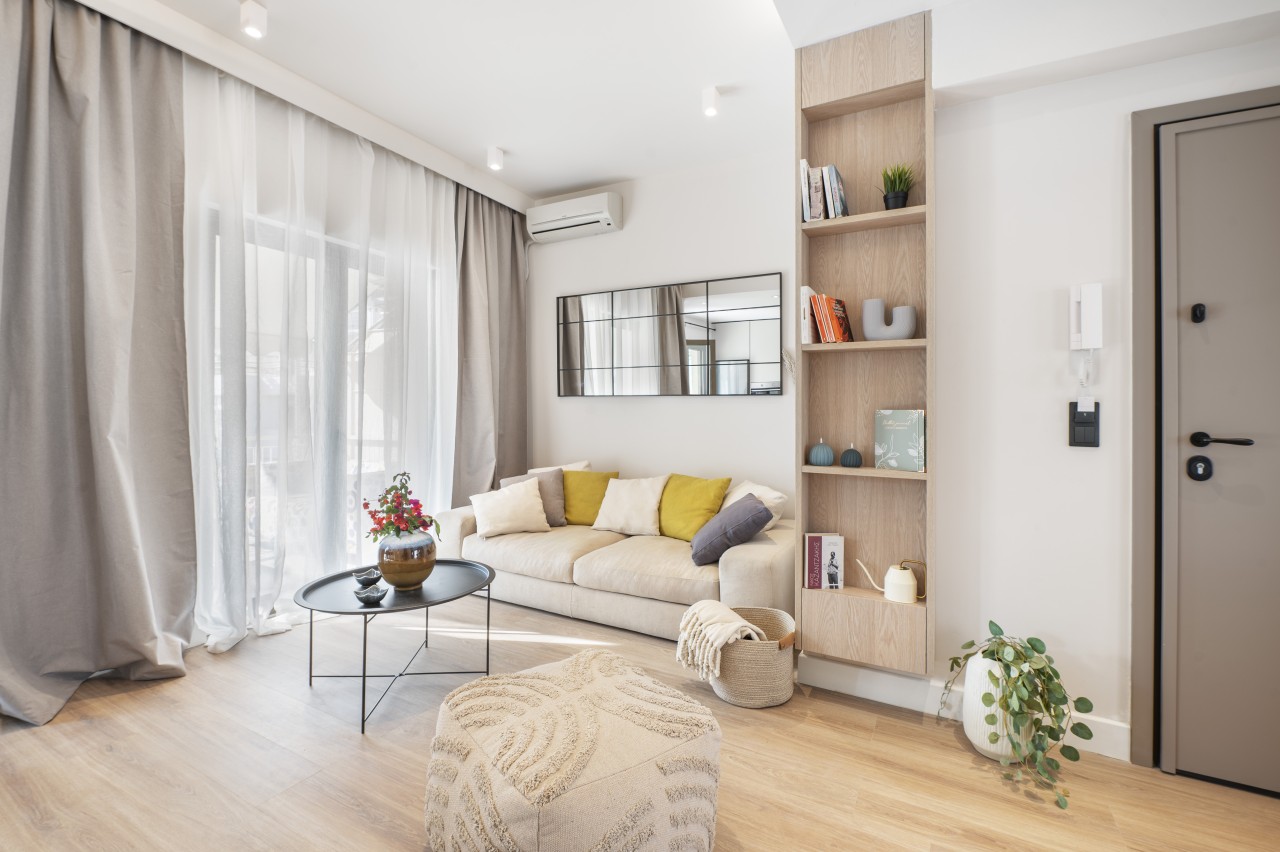 The space is ideal for those looking for a chic, comfortable, and practical base to explore Athens, offering a mix of contemporary style with local charm.