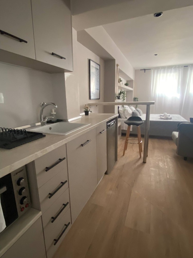 A brand new, semi-basement, spacious studio, close to universities & hospitals, located in a very quiet and low traffic area, 15 min by foot from Thessaloniki center