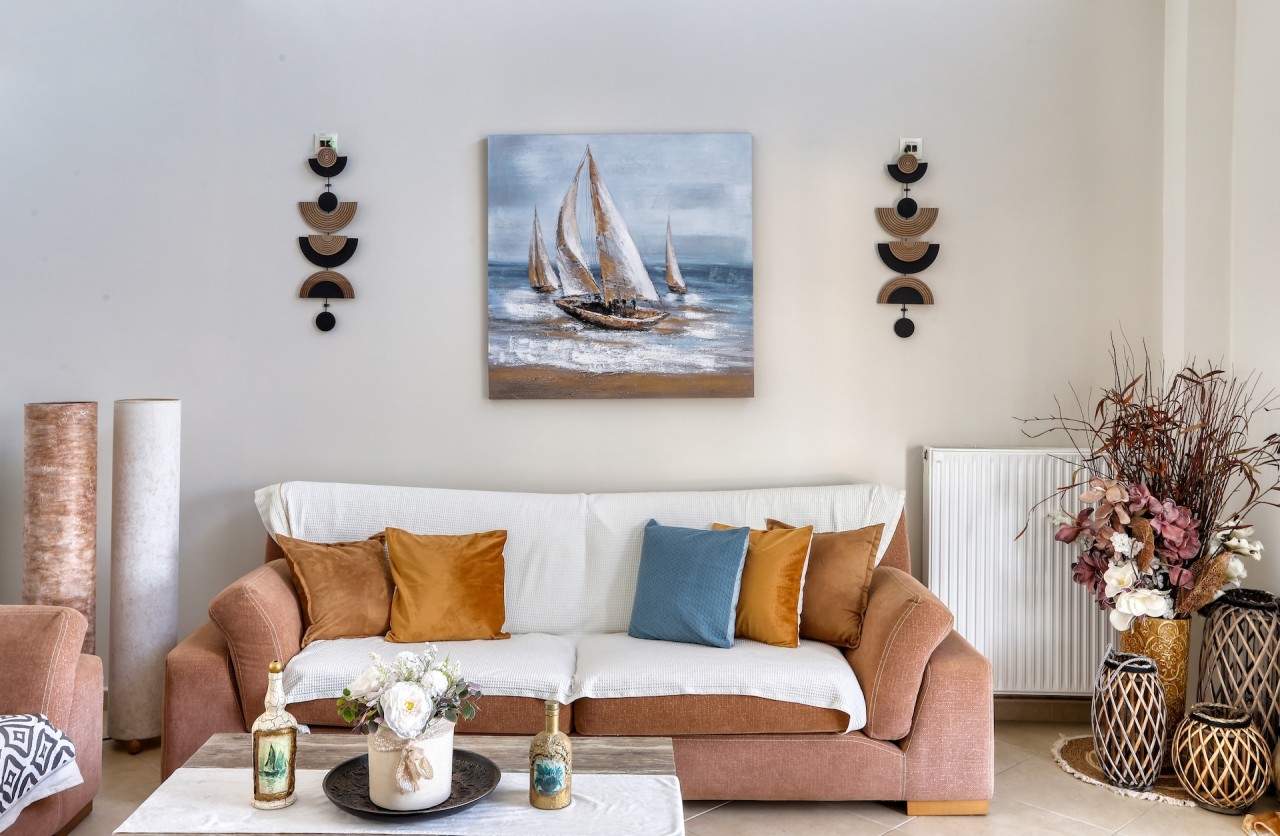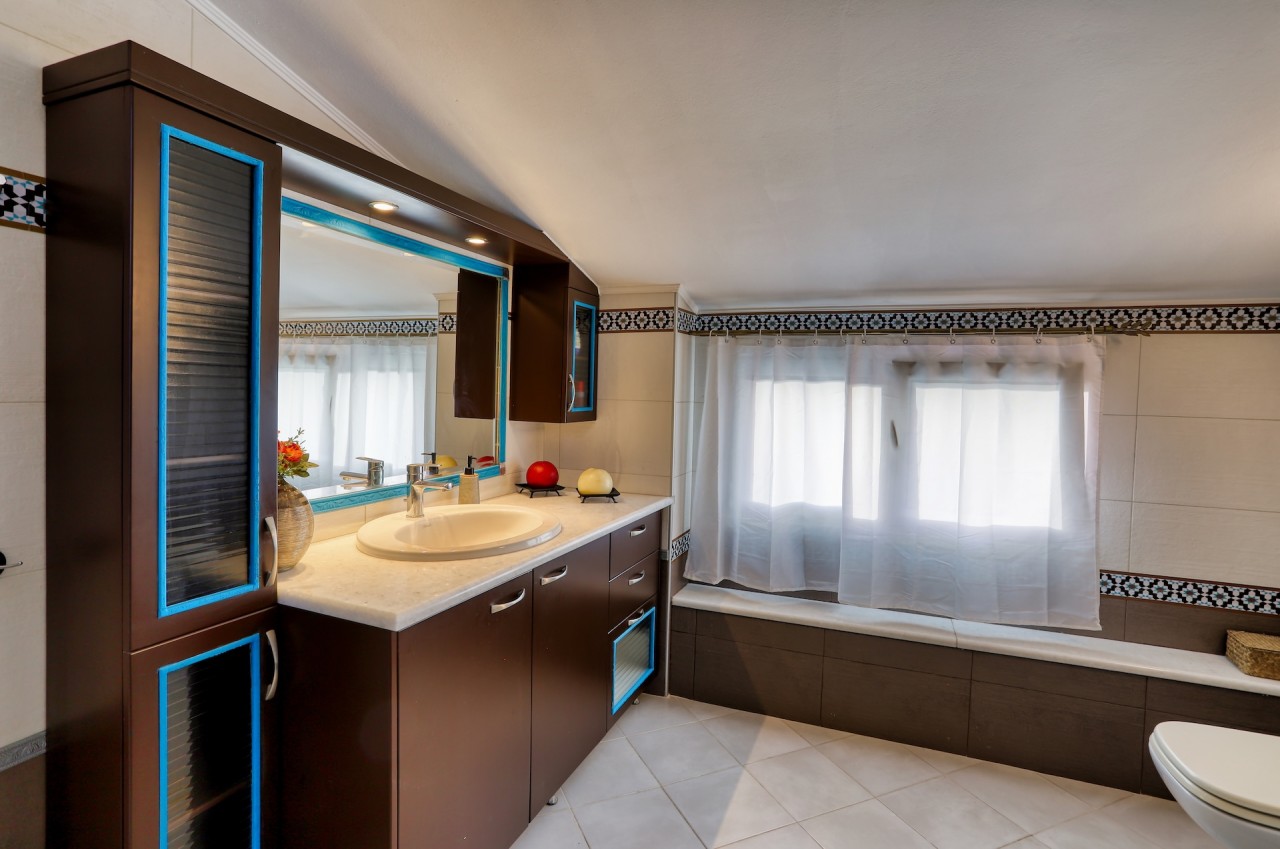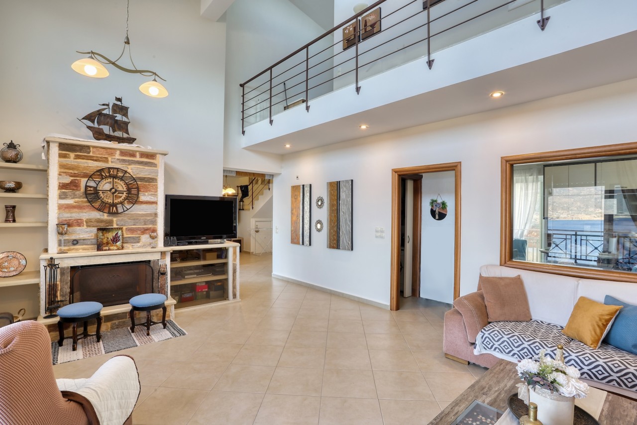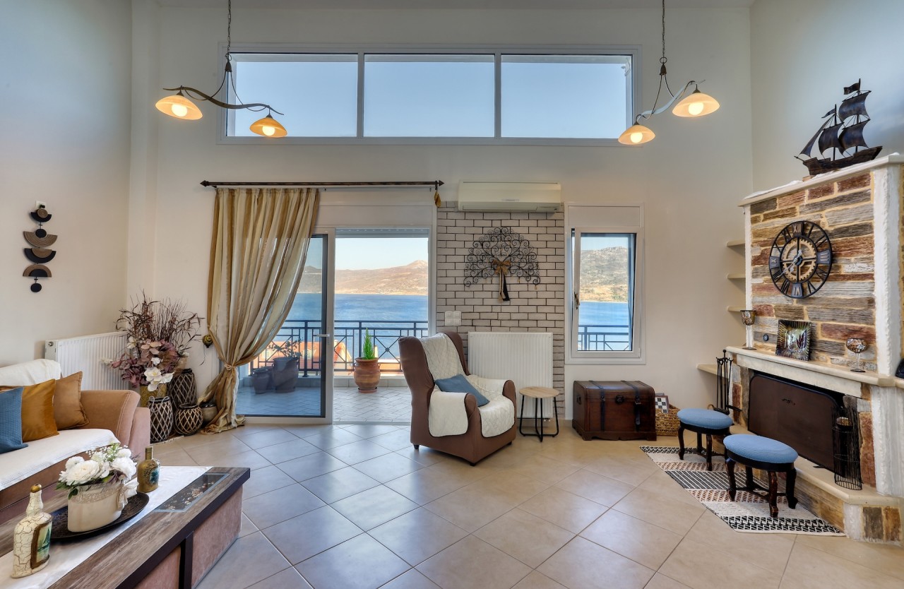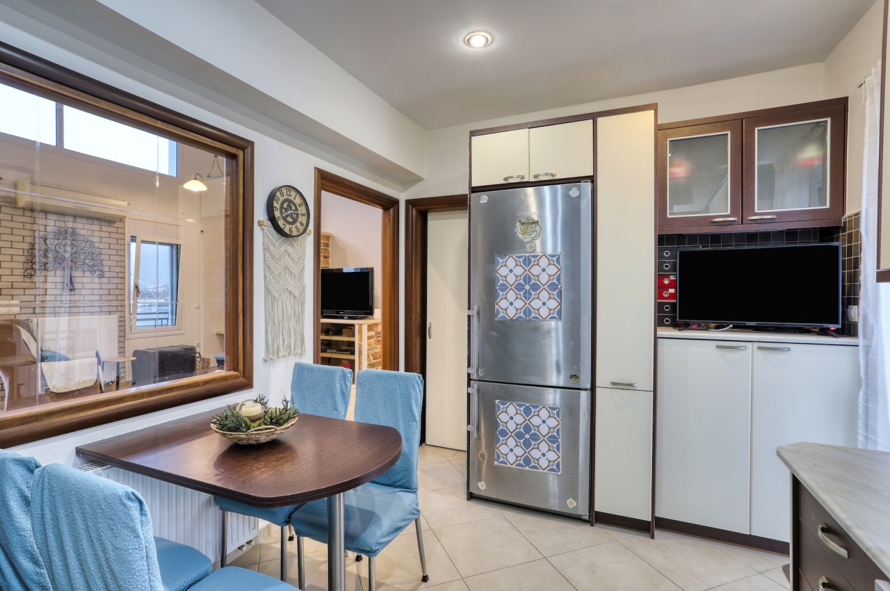 The maisonette includes a fully equipped kitchen ideal for preparing meals, and a spacious living room with a sea-view dining area that adds to the home's appeal. Large windows fill the space with natural light, creating a bright and welcoming atmosphere.