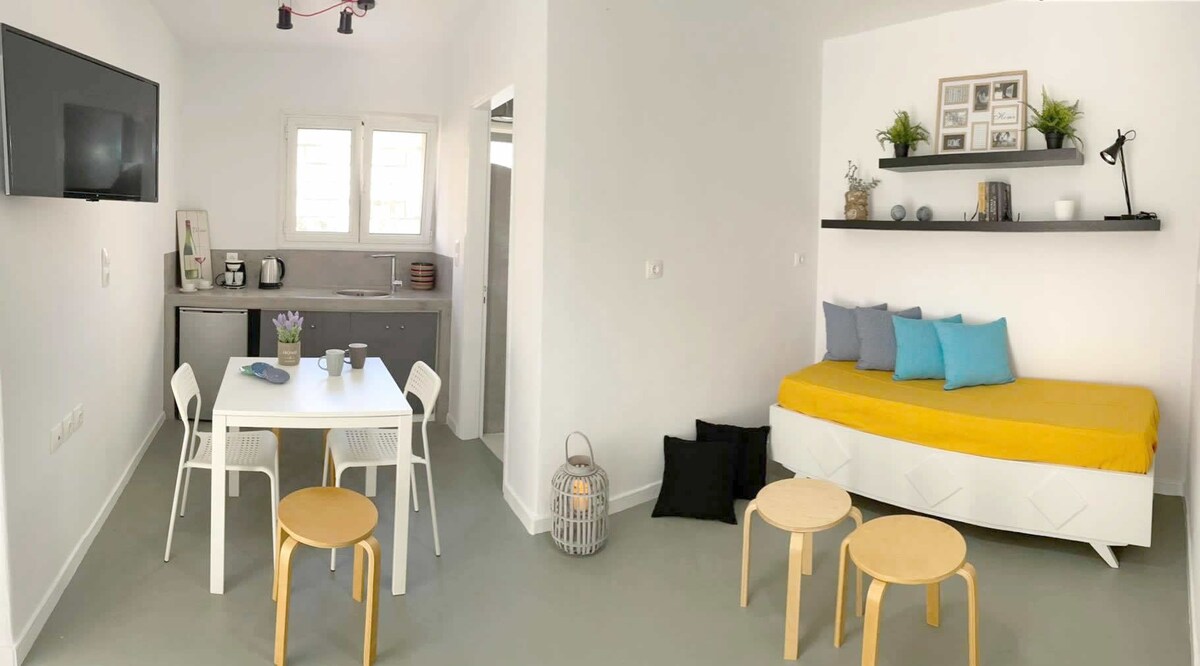 The Sabbia Calda apt 6 is part of a cosy complex of seven B&B units, located in the center of Perissa, only a few minutes walk (100m) from the famous Βlack Βeach of Santorini and close to the bus stop, market, restaurants, bars, shops and rental agencies.