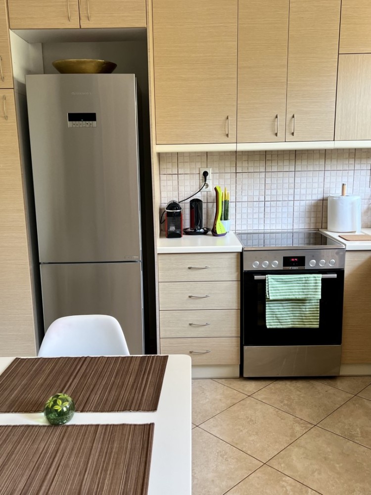 There are 2 bedrooms with double bed each. There are also 2 extra folding beds available, in order to accommodate another 2 guests if necessary, making it ideal for long stays & hosting friends or family