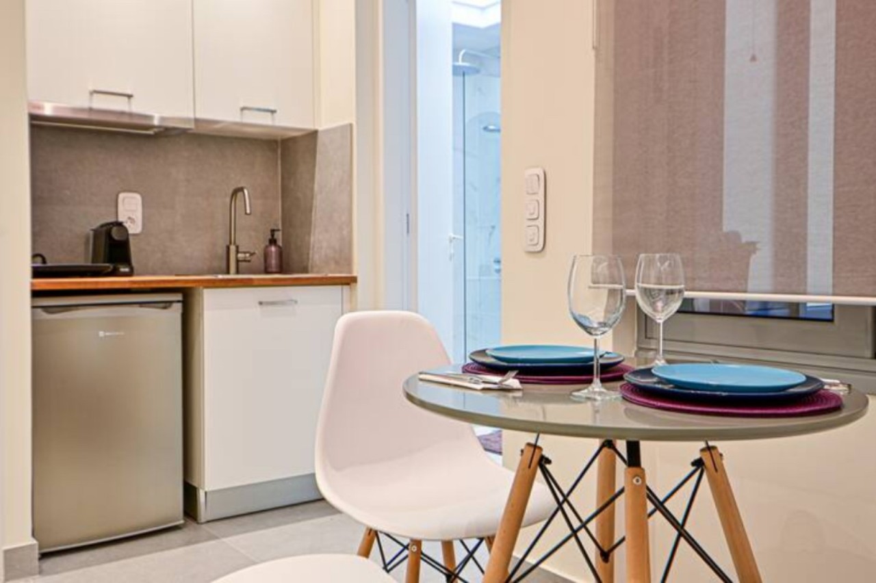 Within walking distance of major historic landmarks as well as lively bars and exquisite restaurants, while also concealed from the street noise due to being situated at the back of the building, the cozy apartment is at an ideal location for couples and solo travelers visiting Athens.