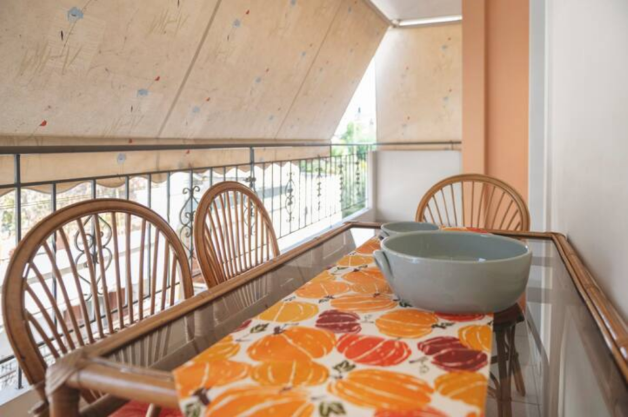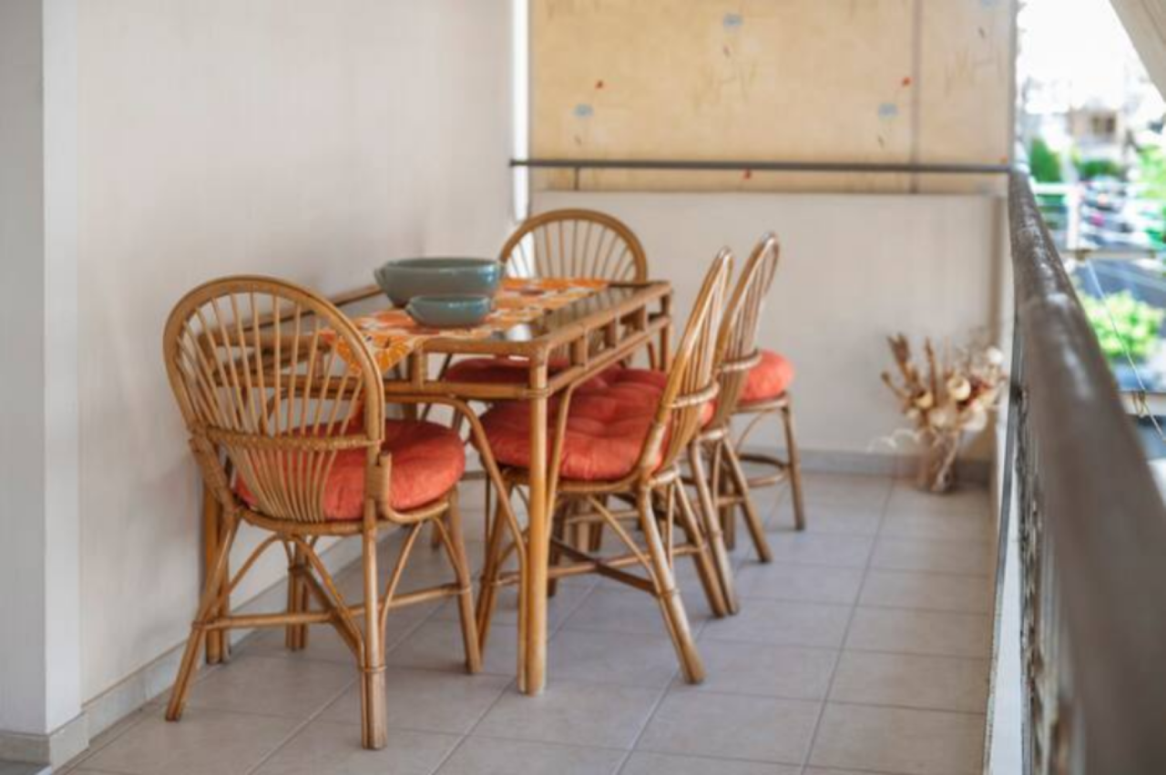 Και το καθιστικό και το κύριο υπνοδωμάτιο ανοίγουν σε ένα μεγάλο μπαλκόνι , εξοπλισμένο με ξύλινα έπιπλα κήπου, όπου μπορείτε να απολαύσετε τον πρωινό καφέ ή να χαλαρώσετε το βράδυ.