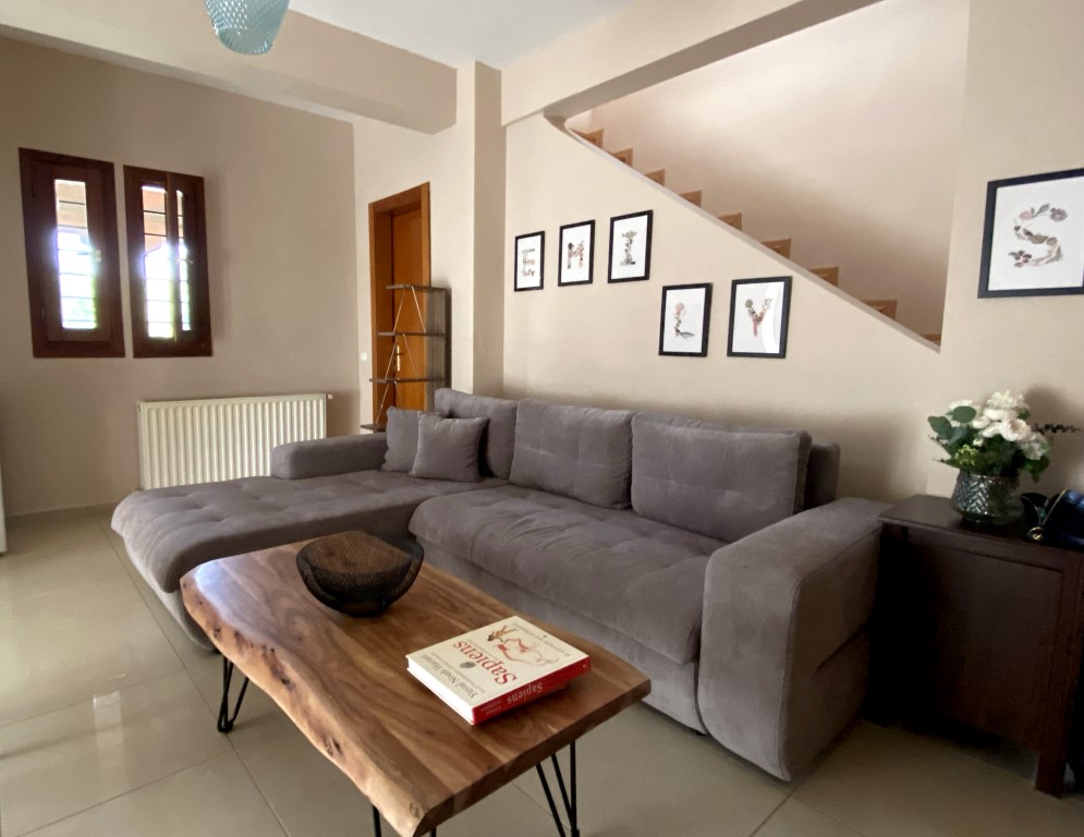 Cosy little house close to Nea Moudania beach A two storeys small maisonette standing alone in a garden as part of a group of houses. Kitchen is fully equipped, there is TV, WiFi. There is a terrace and a parking space. It is in walking distance, about 5’ walk, from the beach. Very close to super market and tavernas. 15’ walk to Nea Moudania centre. Thessaloniki is 40’ drive away and Thessaloniki airport 30’ drive.