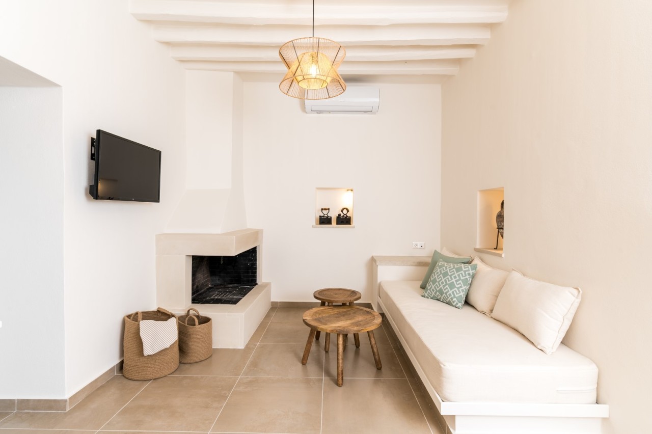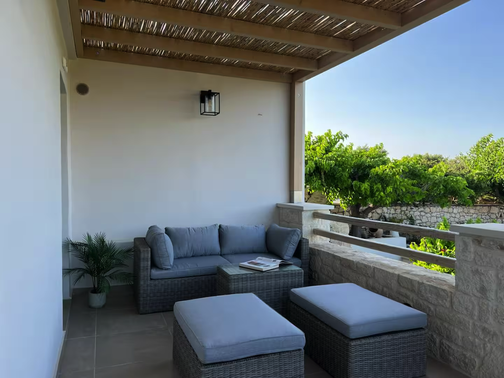 The common outdoor spaces (bbq, garden) make it the perfect getaway for friends or families and -if combined with the apartment downstairs "Oinos Suite & Cave"- it can welcome groups of 6-8 people.