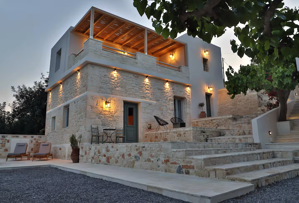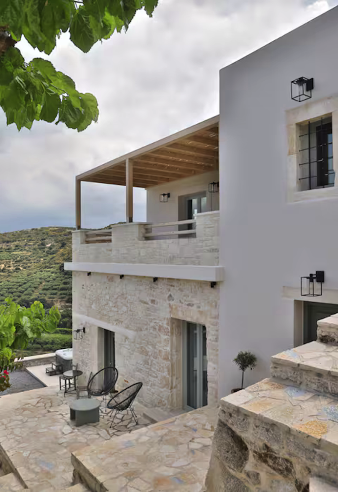 A unique & tranquil getaway in cretan landscape, Ampelos Suite is thoughtfully designed on a fully restored building of 1922. This 1st floor apartment with bespoke finishes & modern furnishings can host up to 3 people. Located on a plot of land among lush mediterranean vegetation & hiking trails, it offers view to vineyards. The common outdoor spaces (bbq, garden) make it the perfect getaway for friends/families and -if combined with the apartment downstairs- it can accomodate 6-8 people.