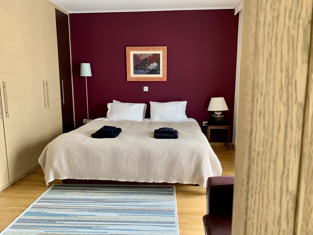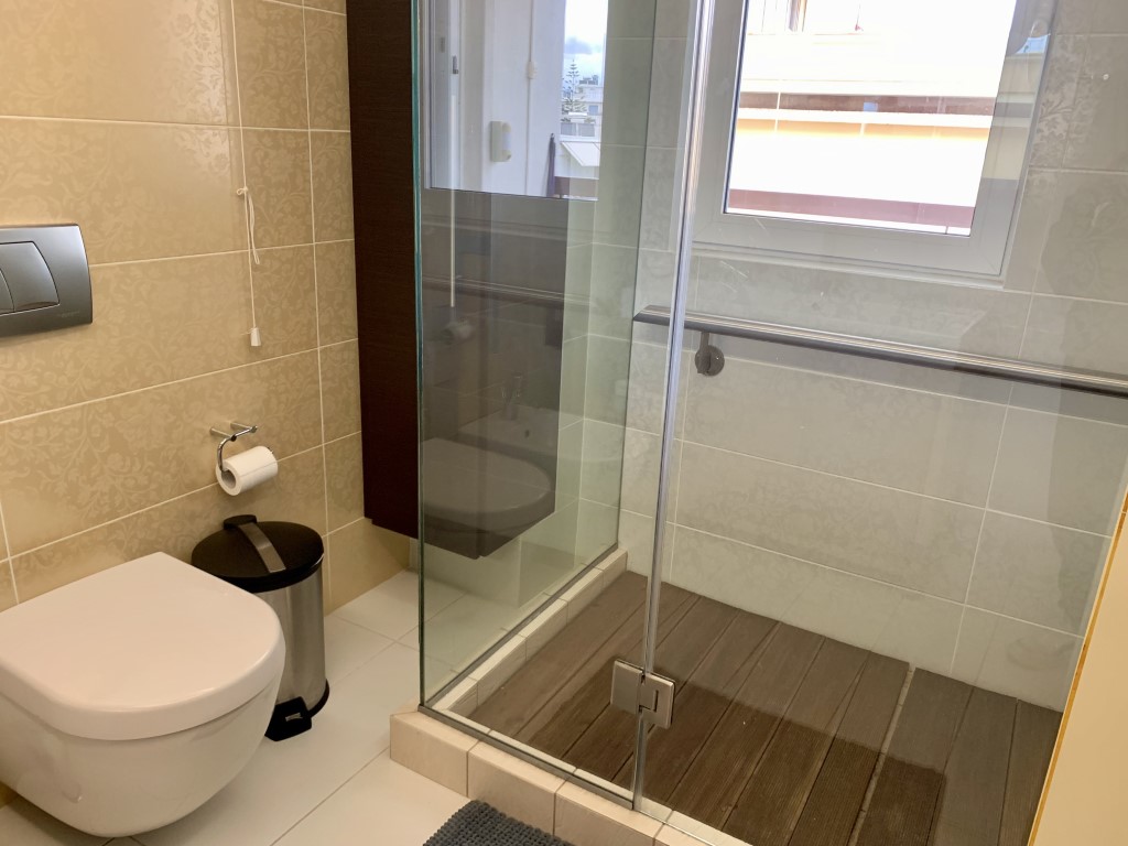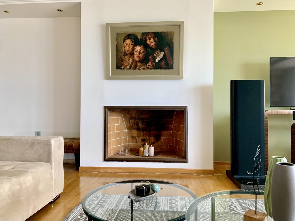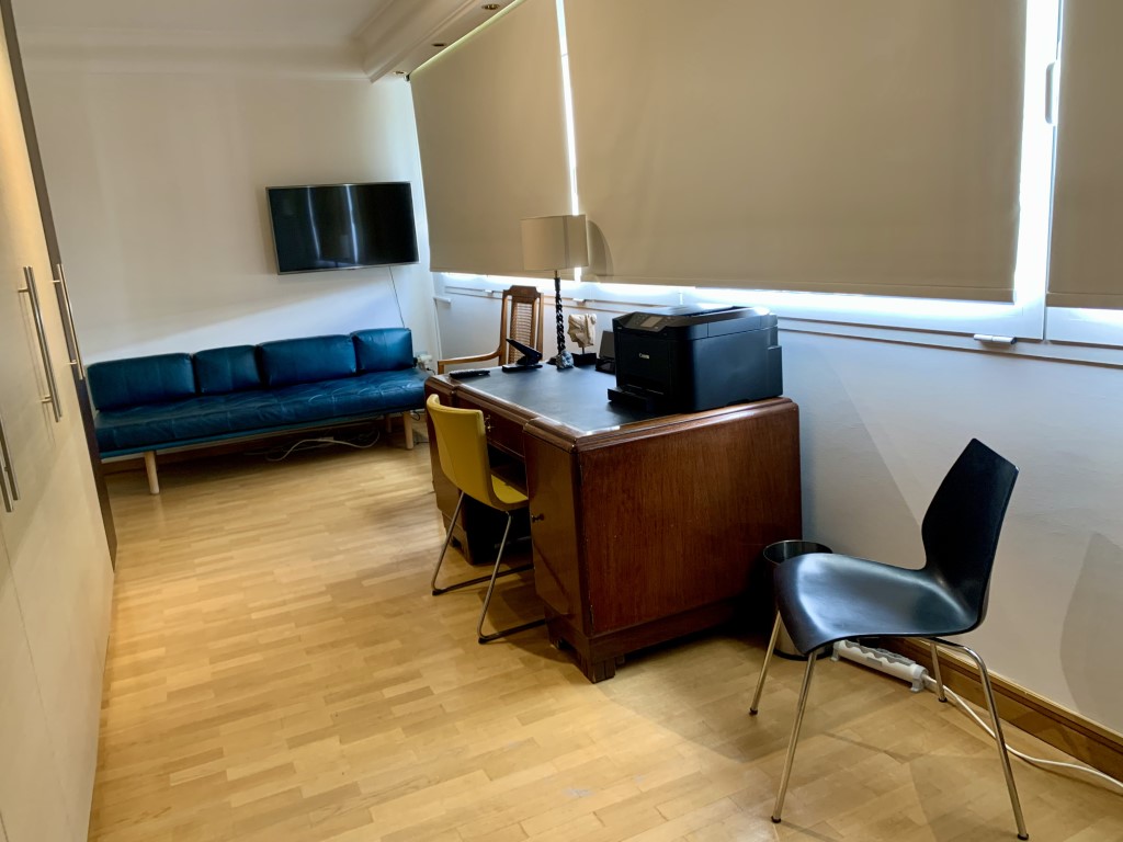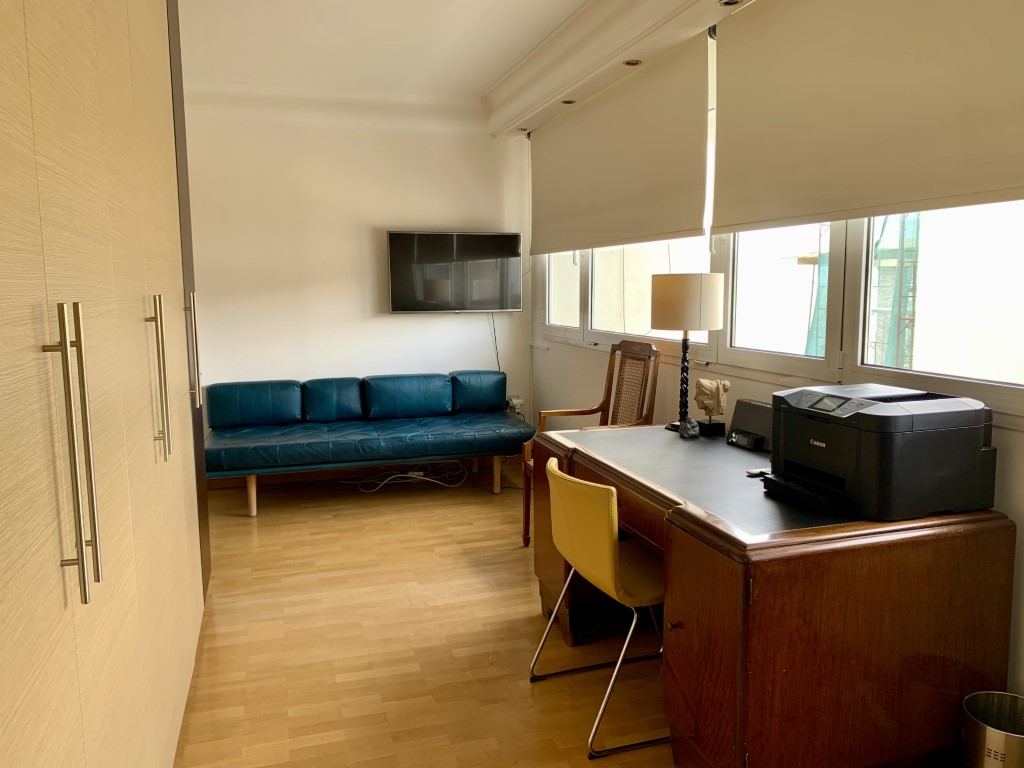 The 200 m2, elegant apartment features a large living room, dining room and office , 2 master bedrooms with ensuite bathrooms an extra room with 2 single sofa beds, 1 additional bathroom and 1 wc .