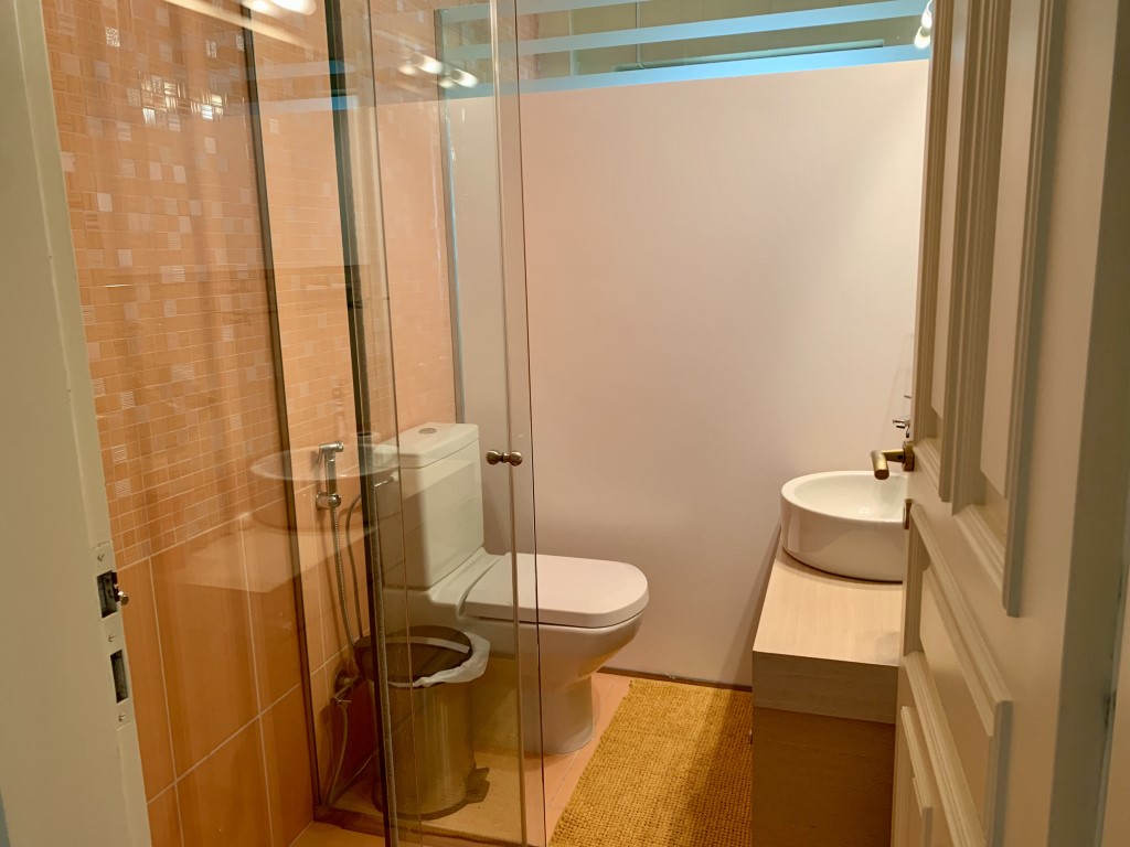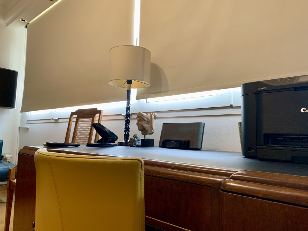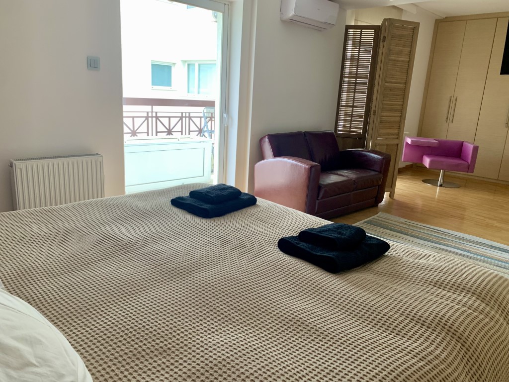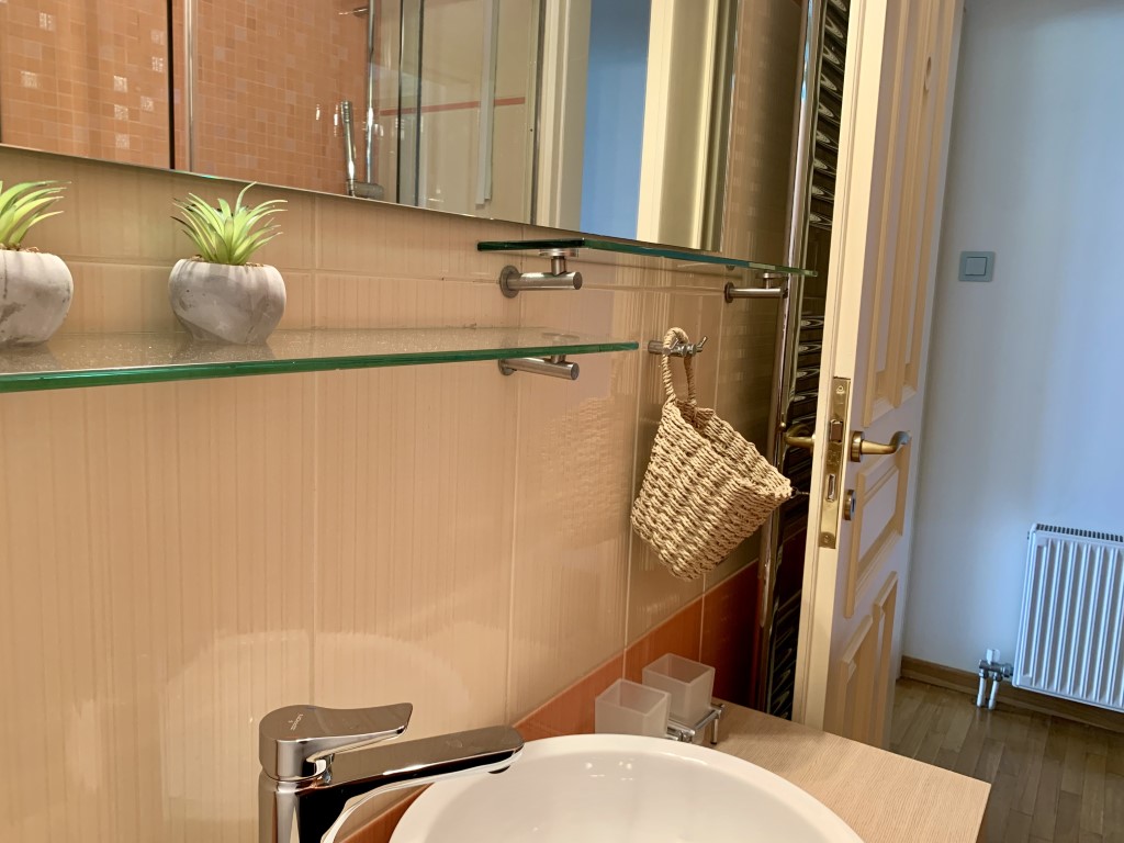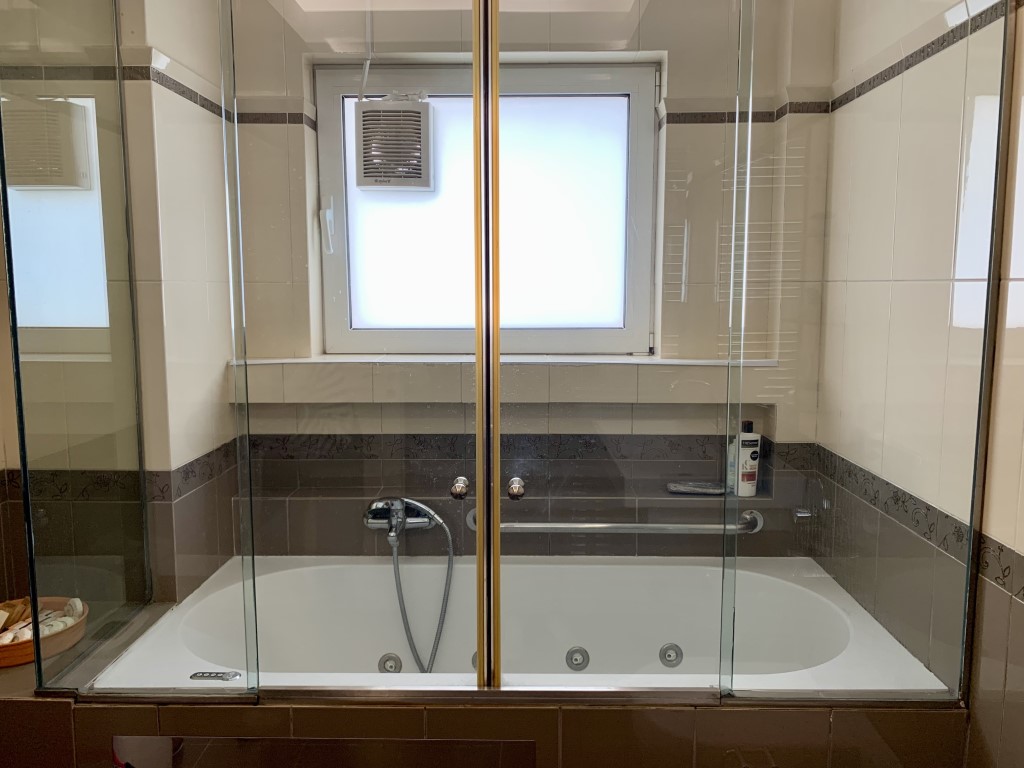 The 200 m2, elegant apartment features a large living room, dining room and office , 2 master bedrooms with ensuite bathrooms an extra room with 2 single sofa beds, 1 additional bathroom and 1 wc .