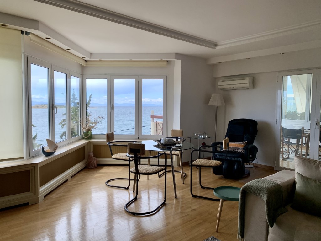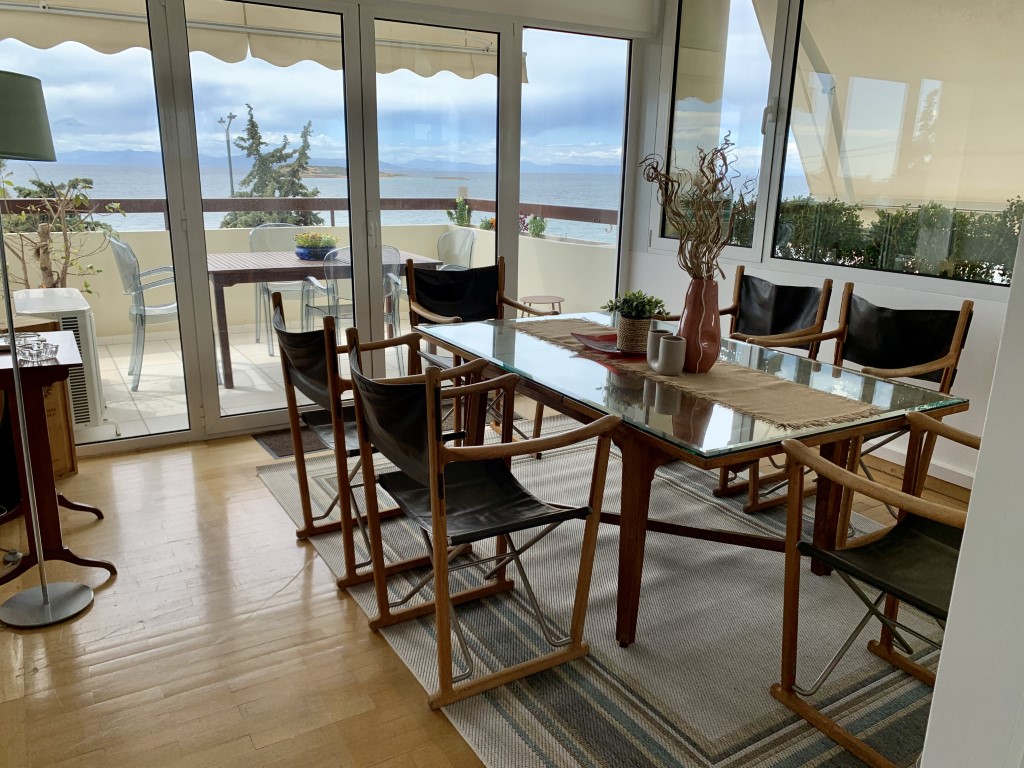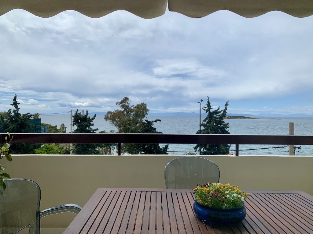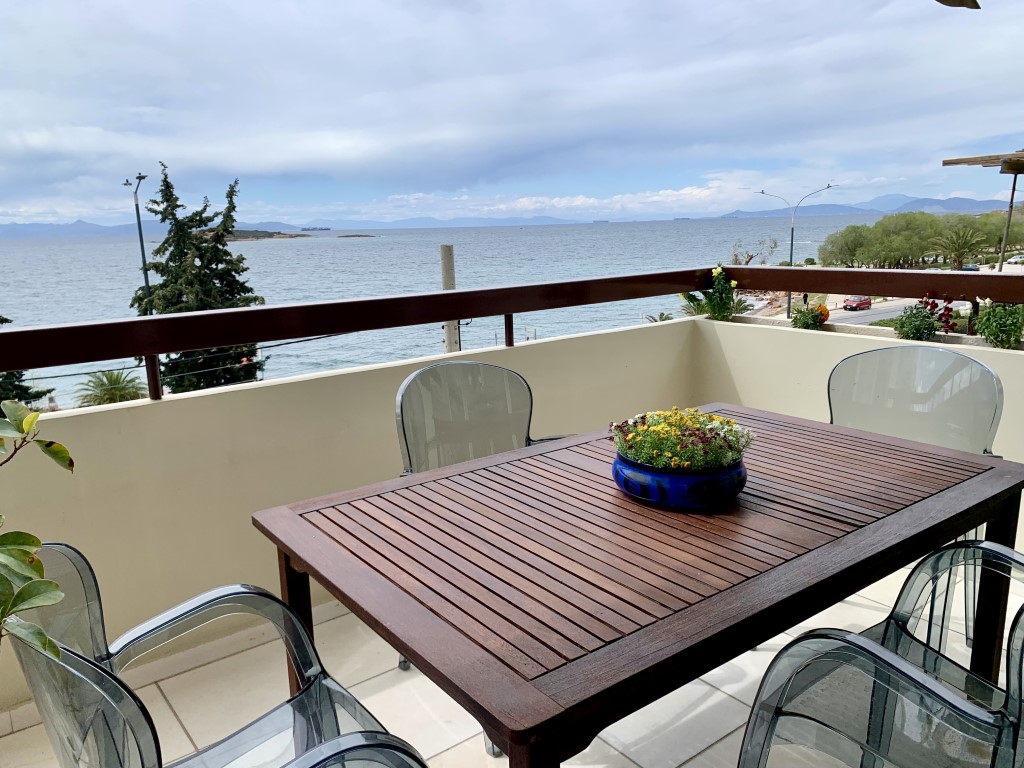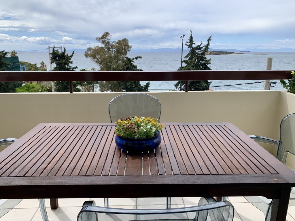 An elegant fully equipped beachfront apartment with large verandas directly overlooking the Athens Riviera, located in Voula, southern suburb of Athens.