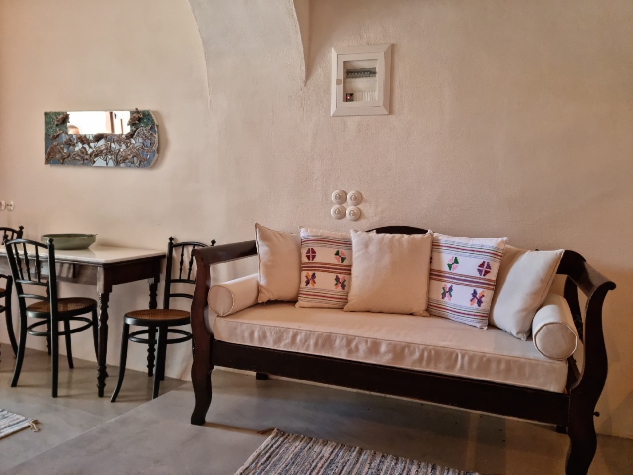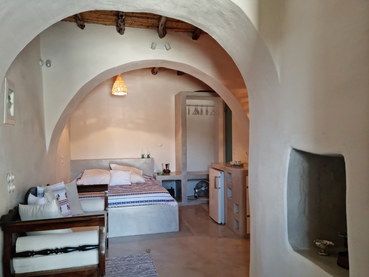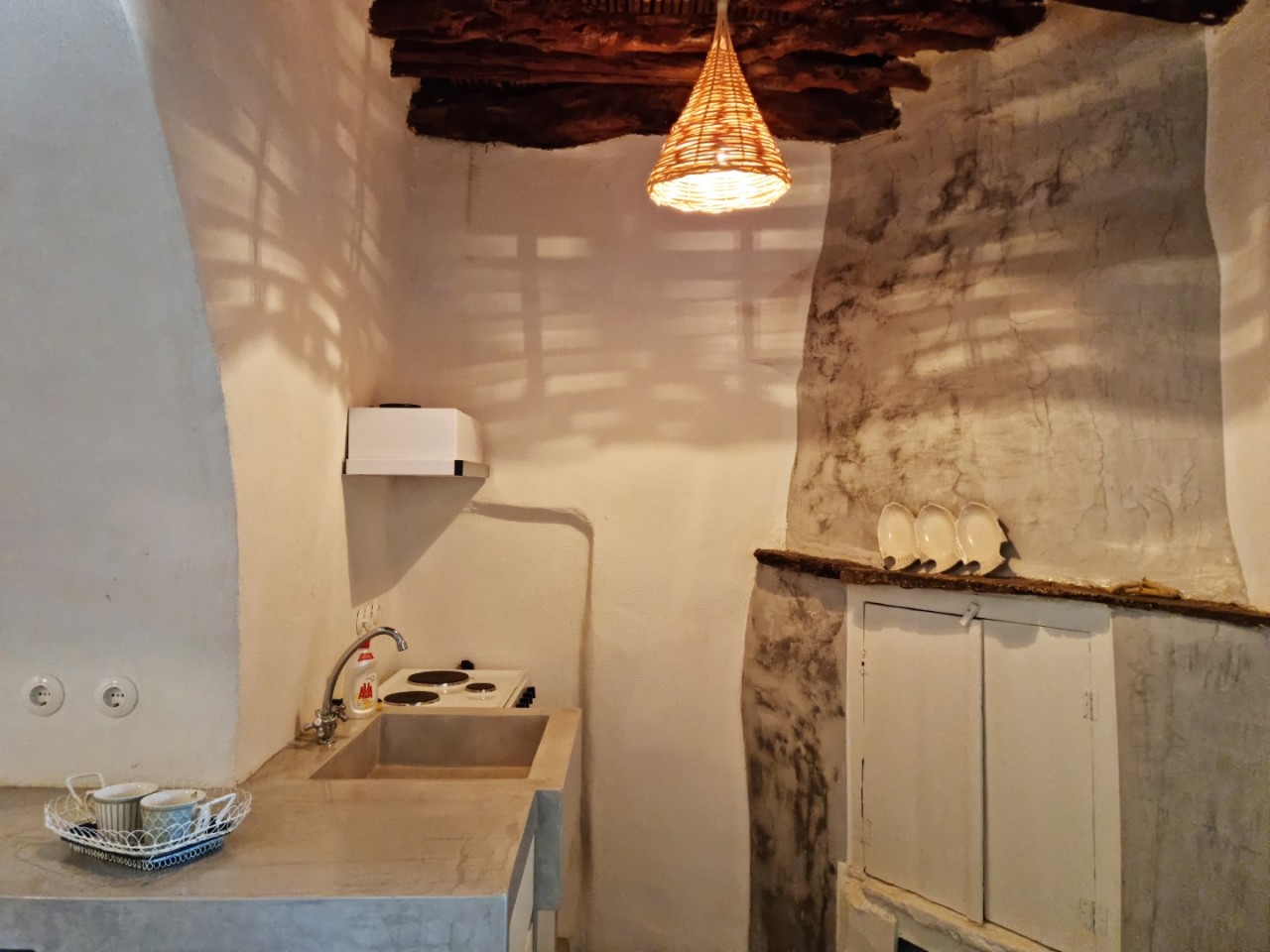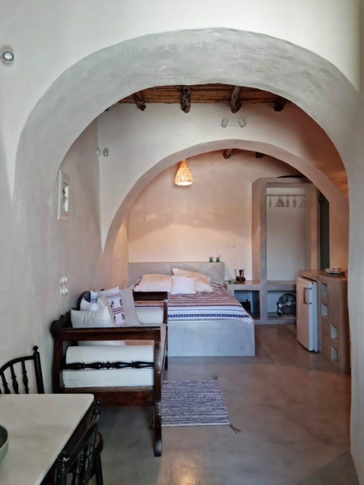 A cave, thoughtfully designed & restored in order to highlight elements of traditional Kyhtnian architecture. Exposed wooden beams, built in oven, reeds-covered ceiling, built in bed , selected antique furniture and local handicrafts offer a rustic yet elegant atmosphere. Bathroom with shower as well as kitchenette is up to modern standards.