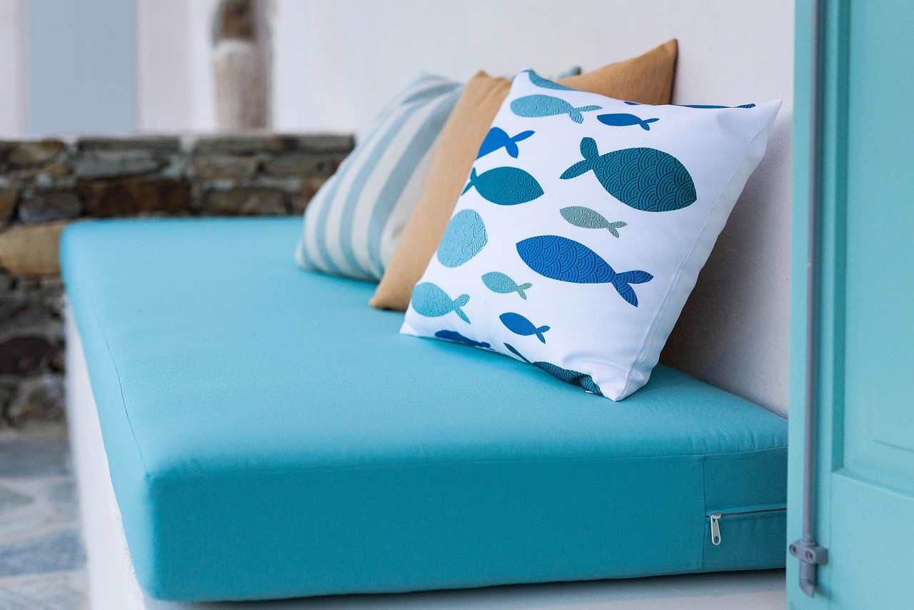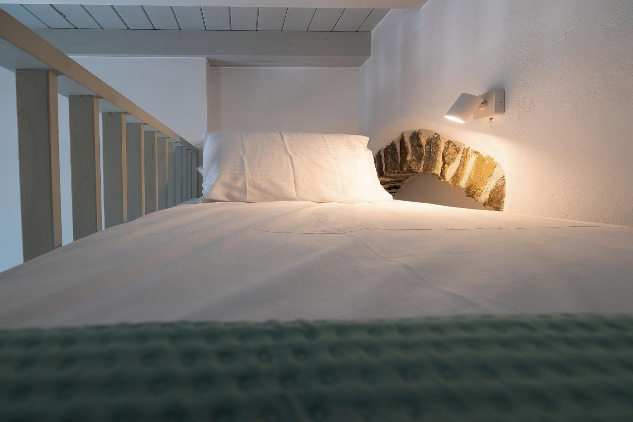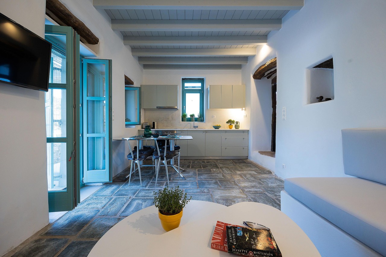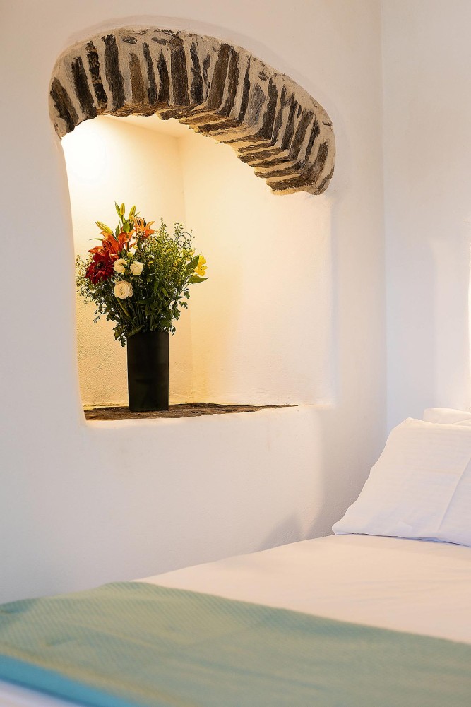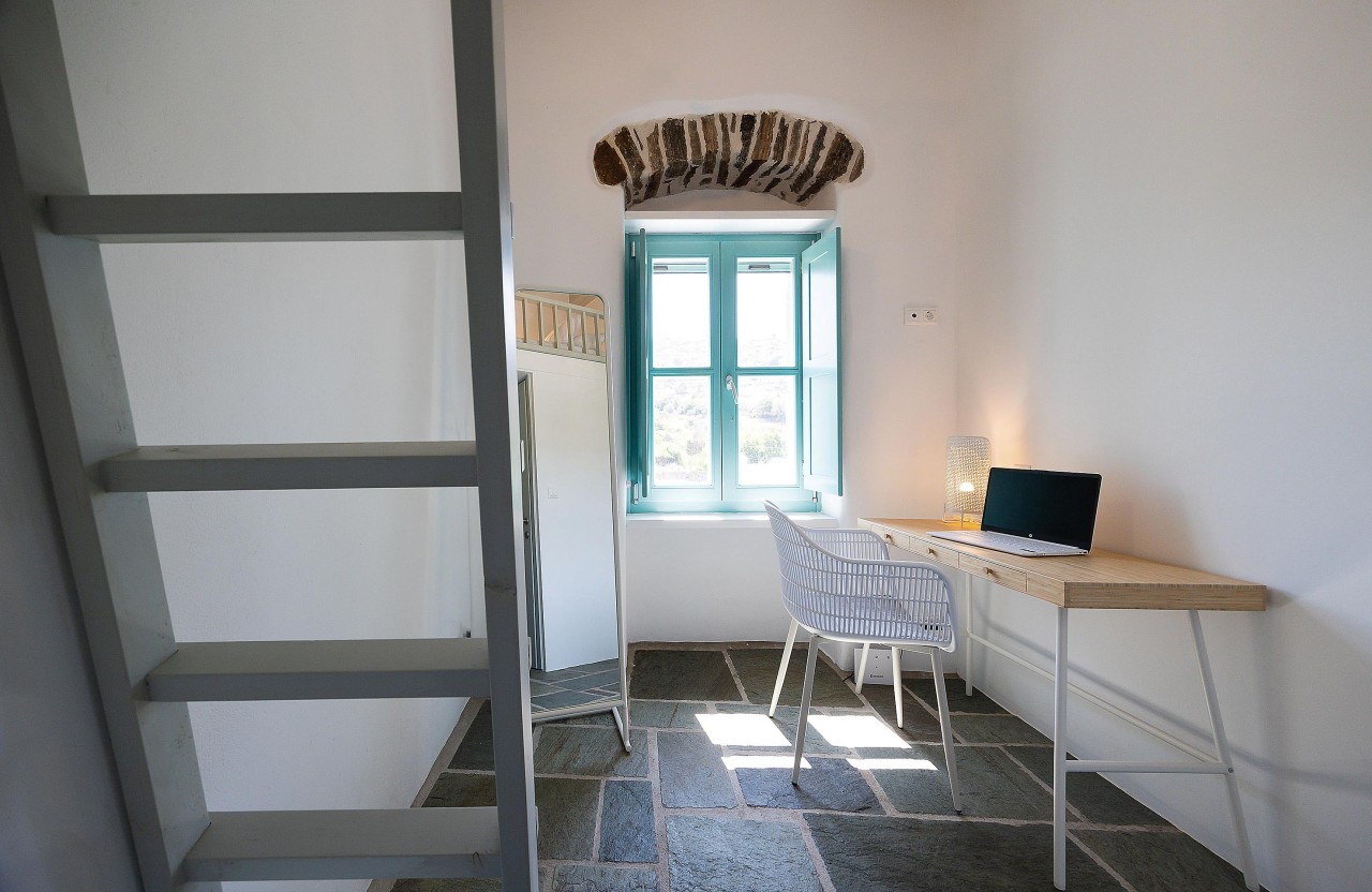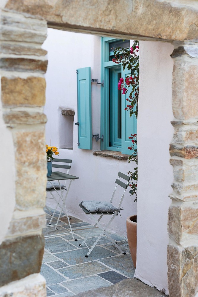 The bright bedroom (with 1 queen sized bed) is decorated with traditional furnishings and offers a balcony overlooking Naxo's landscapes.