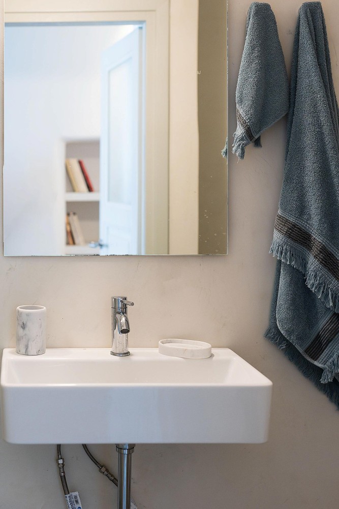 A spacious, modern bathroom is to be shared on this level, while another bathroom with shower is located on the ground floor