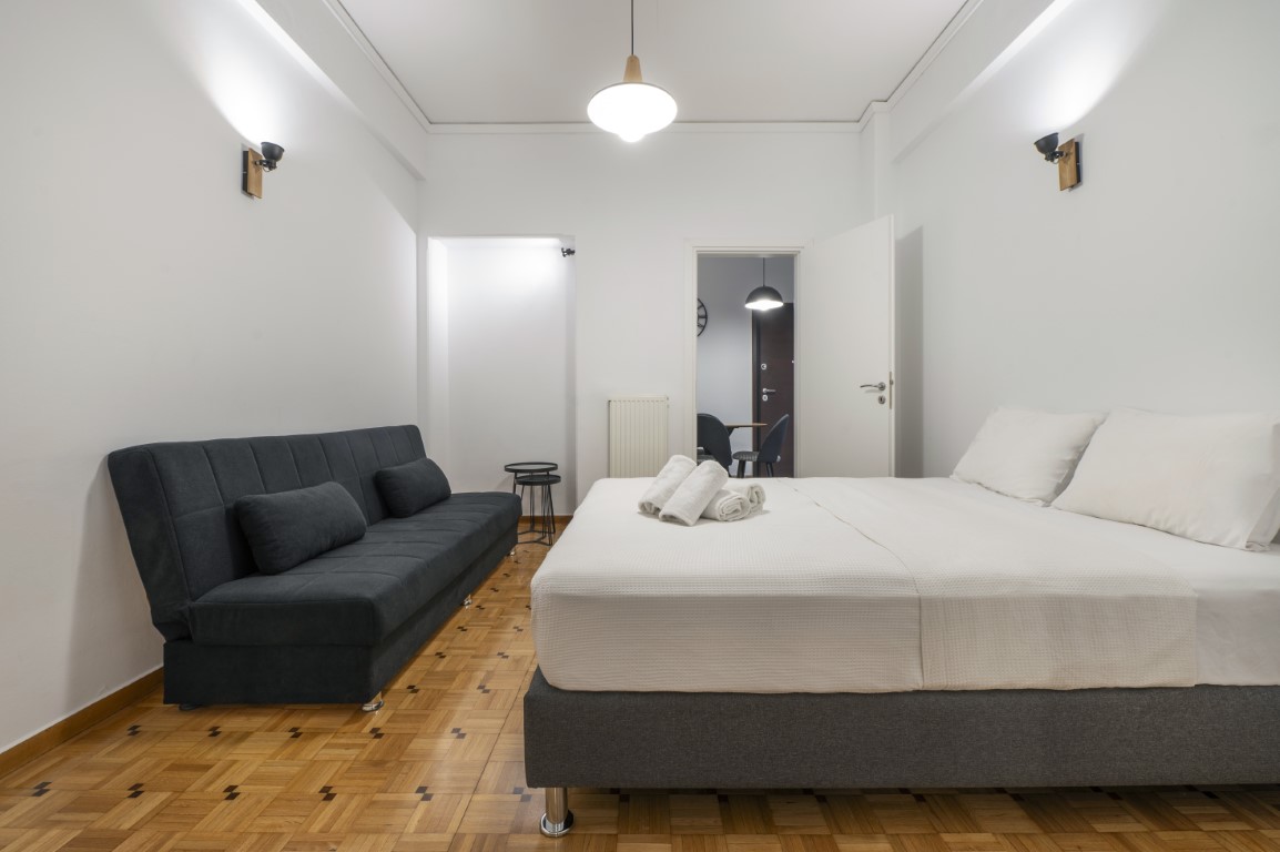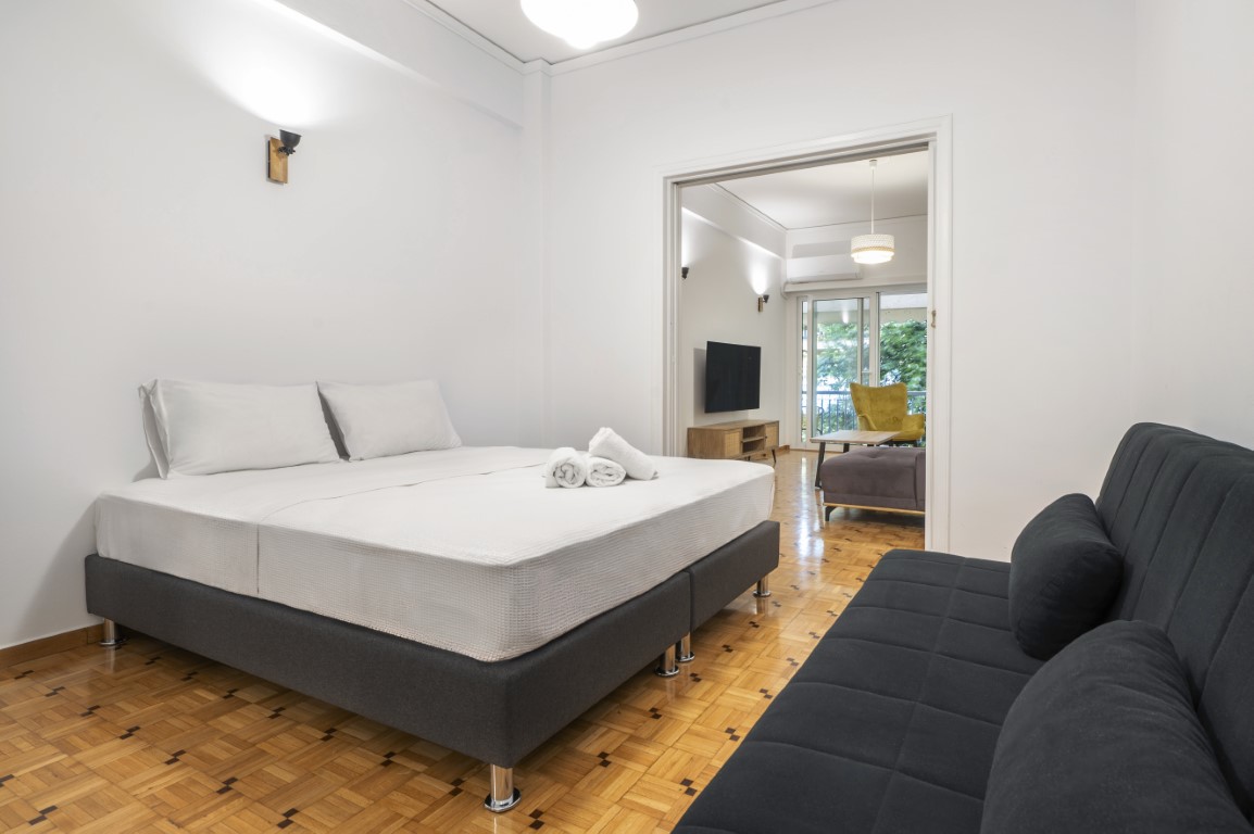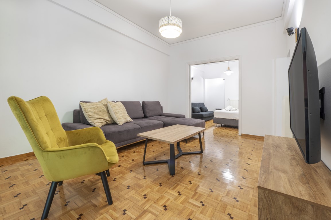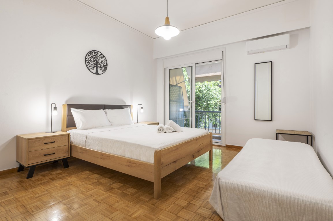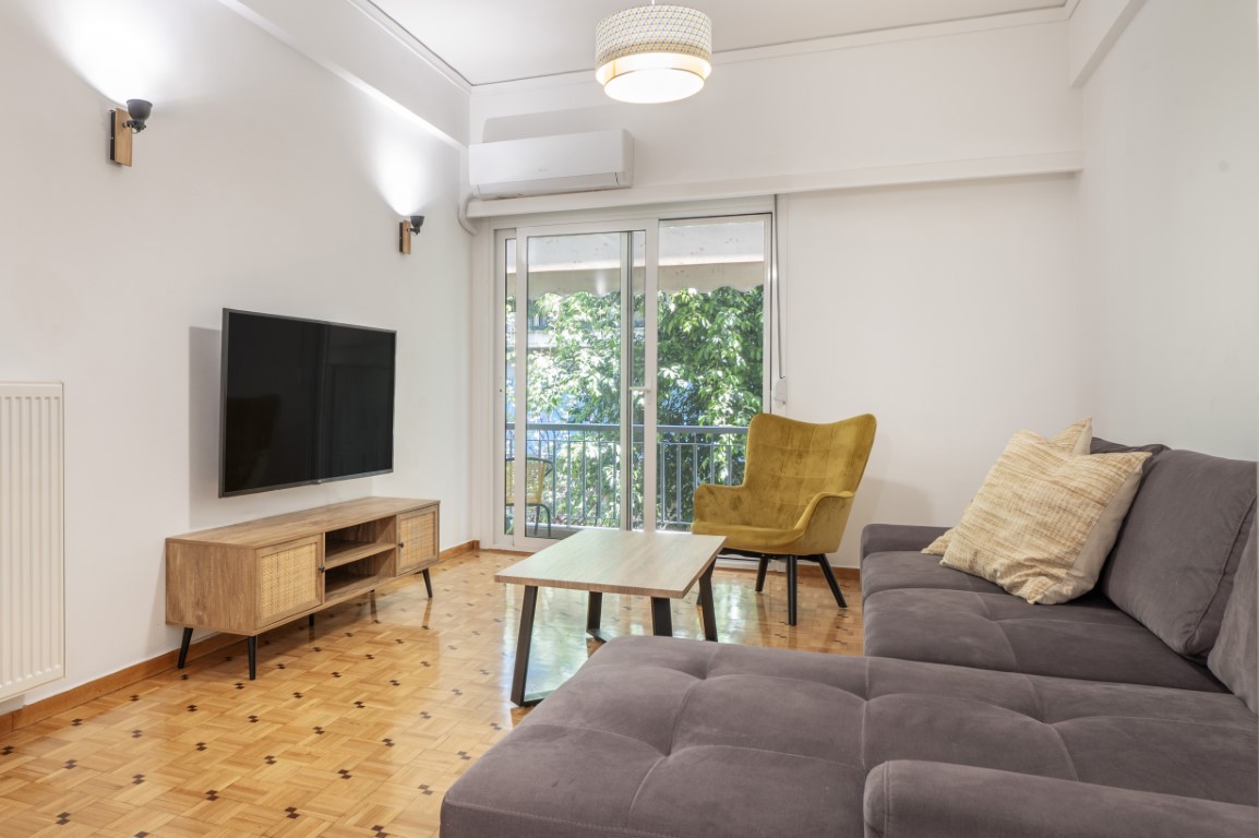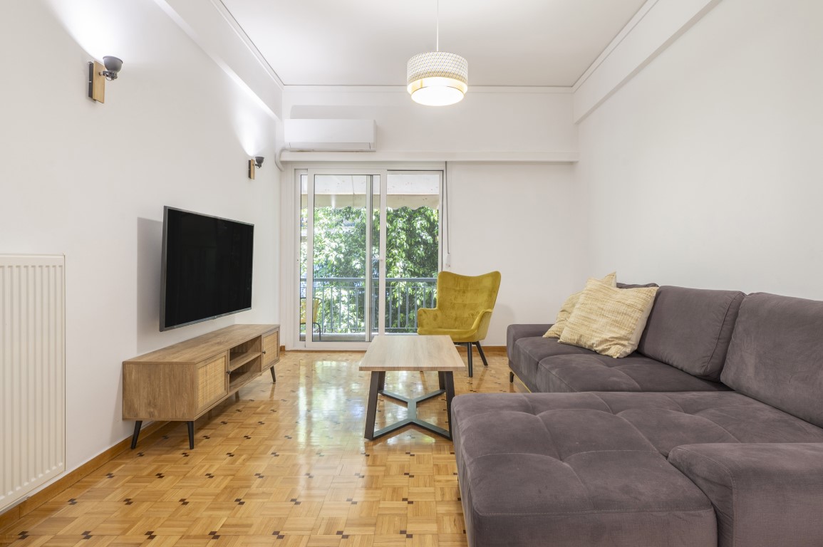 This modern 2-bedroom apt is ideal for accommodating 6 guests in the heart of Kypseli. With a fully equipped kitchen and bathroom, as well as a comfortable living room area, this apt offers all the amenities for a pleasant stay. Its location next to Αttiko hospital makes the apt suitable for those in need of easy access to it. Additionally, it's located within close proximity restaurants & public transportation, making your stay even more convenient.