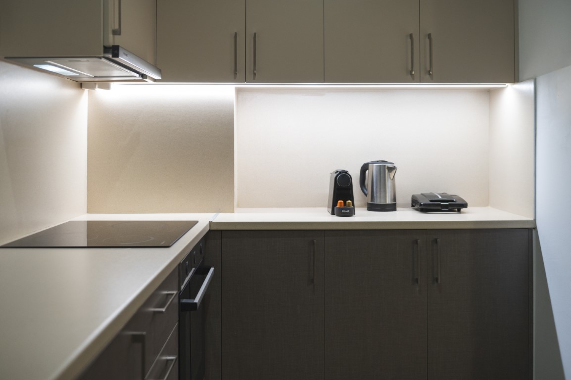 The apartment is located on the 1st floor with access to the balcony on the back side of the building. Each bedroom has a double bed, and there is another couch in one of the bedrooms which can open up into a double bed